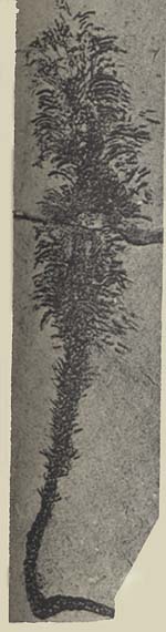 | In 1925, Ruedemann established the genus Medusaegraptus with two species (both from the Silurian of North America): M. mirabilis Ruedemann (type species) and M. graminiformis (Pohlman, 1886) Ruedemann, 1925. Original diagnosis: " Rhabdosome consisting of a simple, nit branching stipe, which is a uniformly thick tube, ending in a blunt point at the base and terminating distally in a dense mass of simple, unbranched flexuosus thin tubes, the thecae" (Ruedemann 1925, p. 29). Boucek (1957) interpreted Medusaegraptus as a graptolite of the order Inocaulida, whereas Bulman (1955, 1970) suggested the algal nature of this fossil. Mierzejewski (1986) considered it be a codiacean alga (Codiaceae), but Lo Duca (1990) assigned it to dasycladacean algae (Dasycladaceae). |